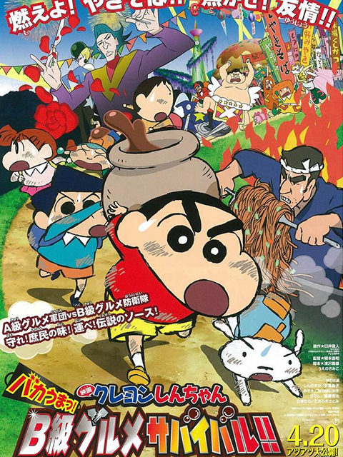 阳光明媚的一天,盛大的B级美食嘉年华在春日部市召开,野原新之助(矢岛晶子 配音)看到新闻后兴奋非常,于是和樱田妮妮、风间彻、代全林、佐藤正男等好朋友们商定,偷偷前往嘉年华大饱口福。与此同时,B级美食嘉年华举行的消息也传到所谓的A级美食机构。该机构最高负责人满美食大人(中村悠一 配音)对B级食物充[展开全部]