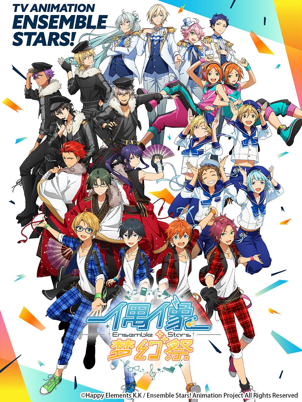 专门培养男性偶像的私立梦之咲学院。冰鹰北斗、明星昴流、游木真、衣更真绪4人组成了“Trickstar”的偶像组合,以顶尖偶像作为目标,每天努力练习着。可是,梦之咲学院主办了偶像们相互比拼各自魅力的实况录音活动,通称“梦幻祭”,学院的秩序也被这一活动所统治着。为了寻求改革、“Trickstar”向学生[展开全部]